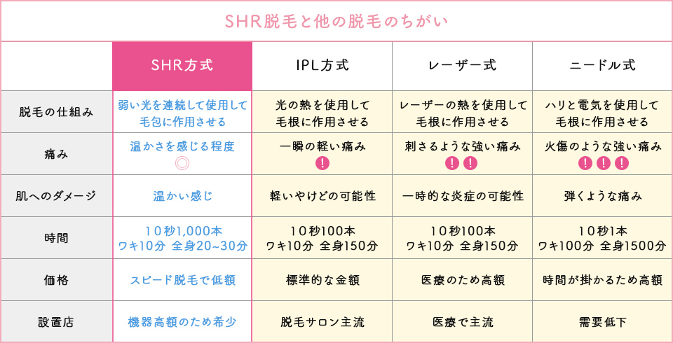 新理論SHR方式採用で気になる箇所もスッキリ脱毛♪